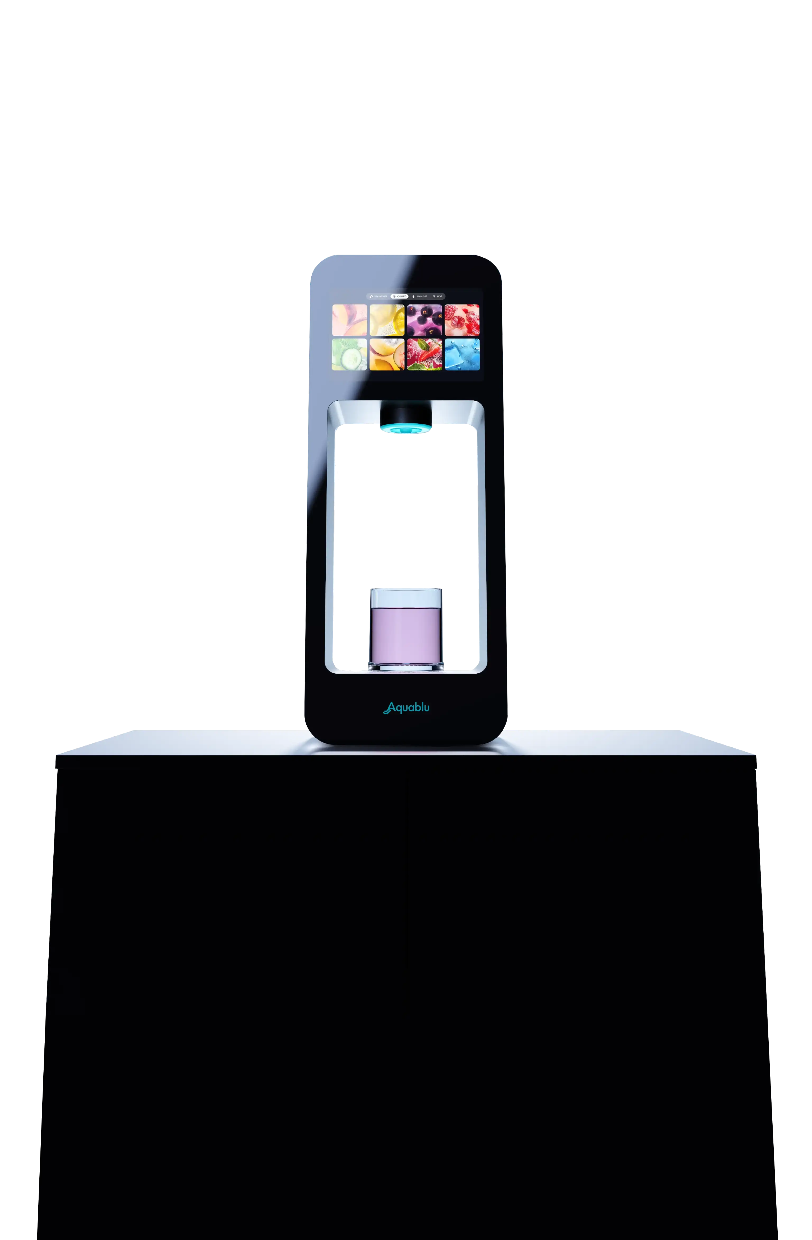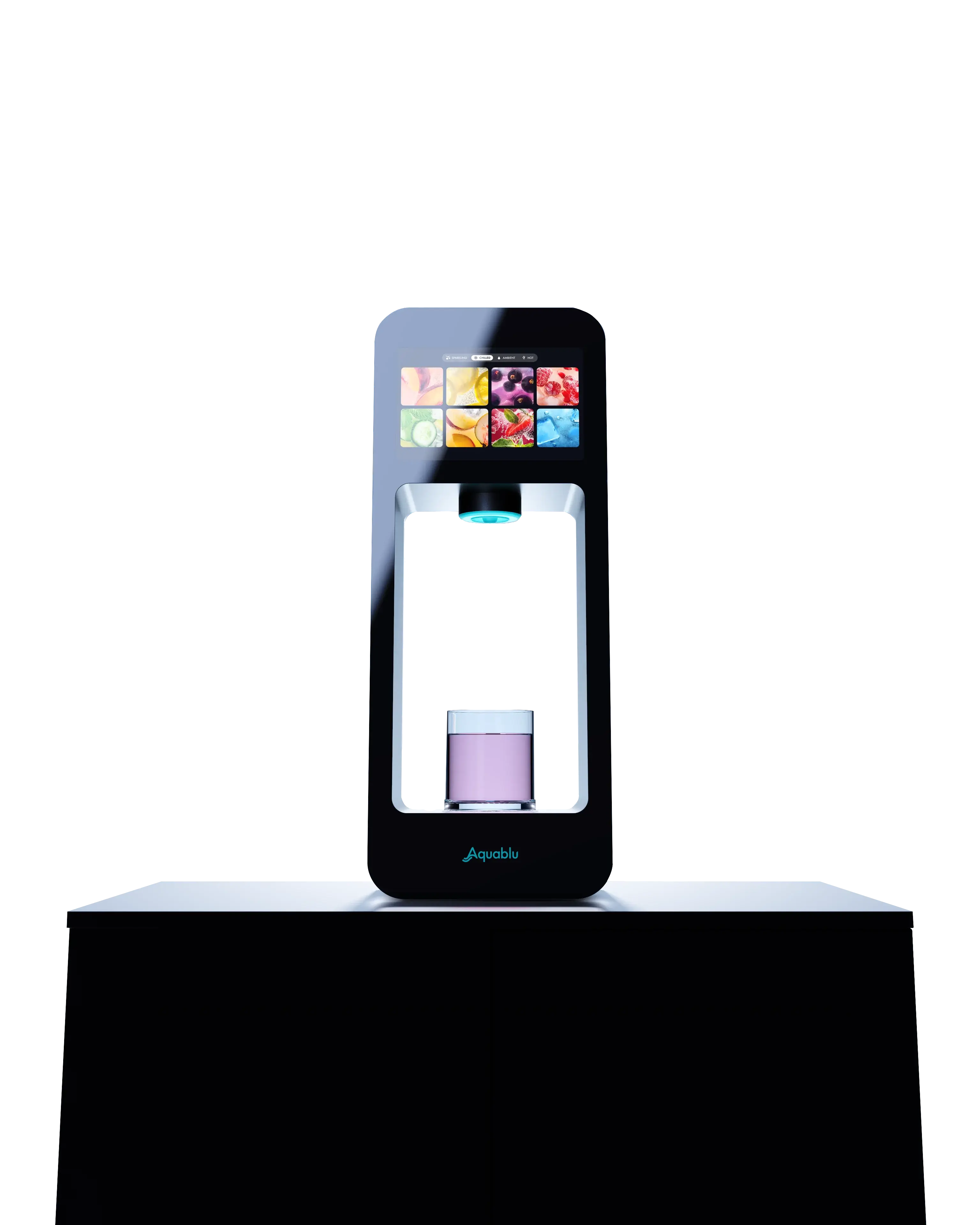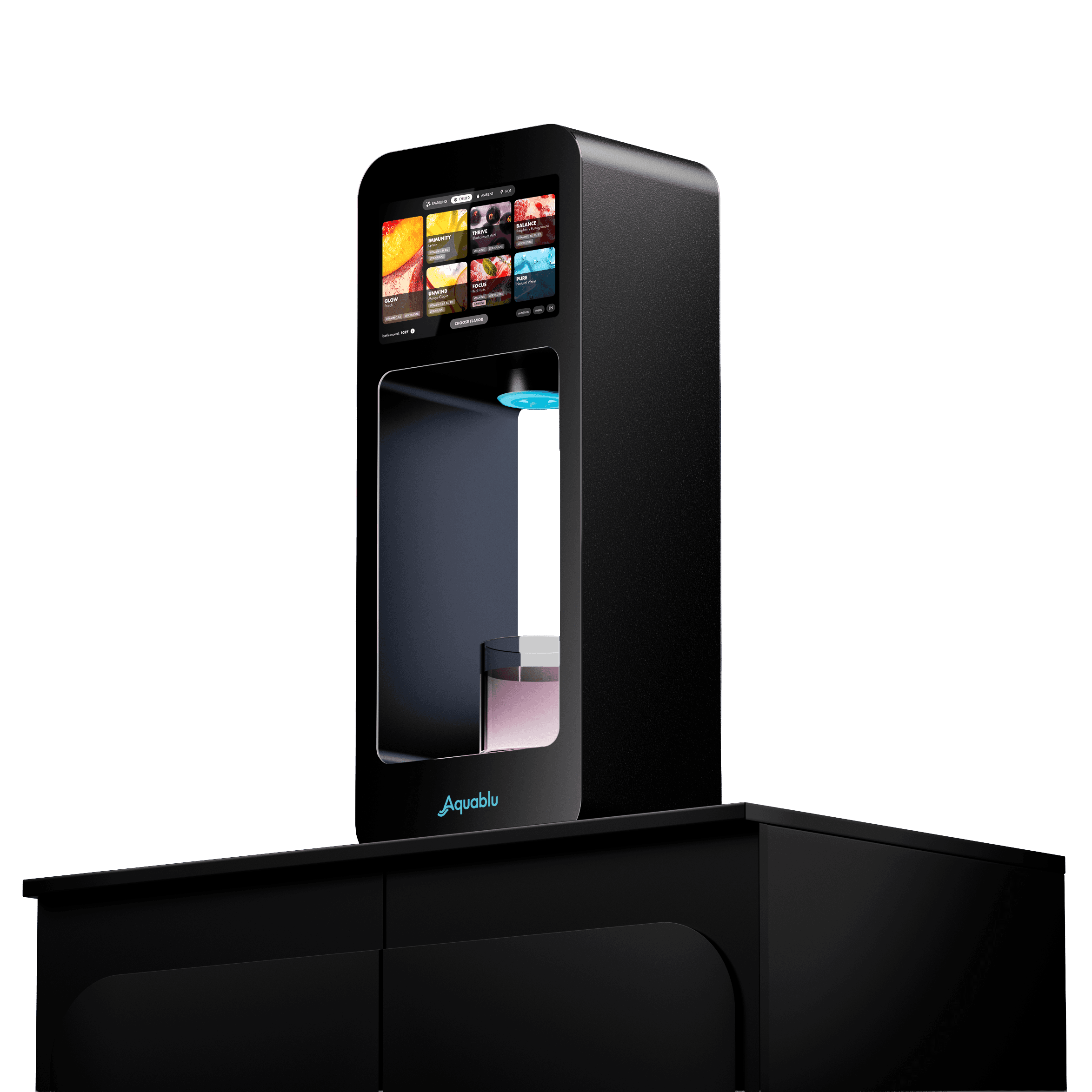 Aquablu REFILL+ is a smart hydration system offering functional drinks in 60 possibilities. Enjoy the refreshment of bottled drinks, without the waste.